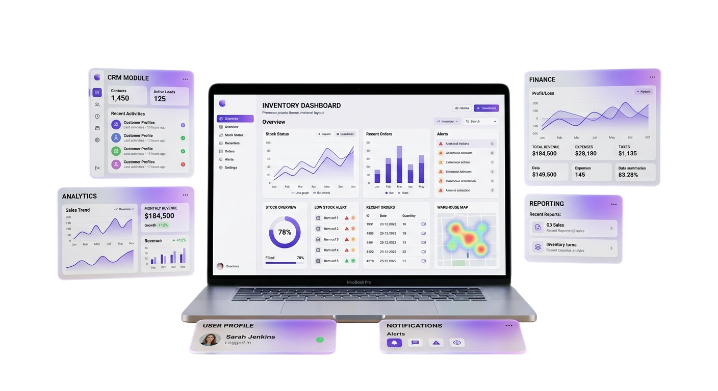 Our Real Estate ERP Software is designed to meet the specific needs of Real Estate professionals. From managing CRM and Sales to handling Property Management , HR, Payroll, Finance and Asset Management, we provide a Comprehensive Solution that simplifies Workflows, reduces Costs, and maximizes Efficiency.